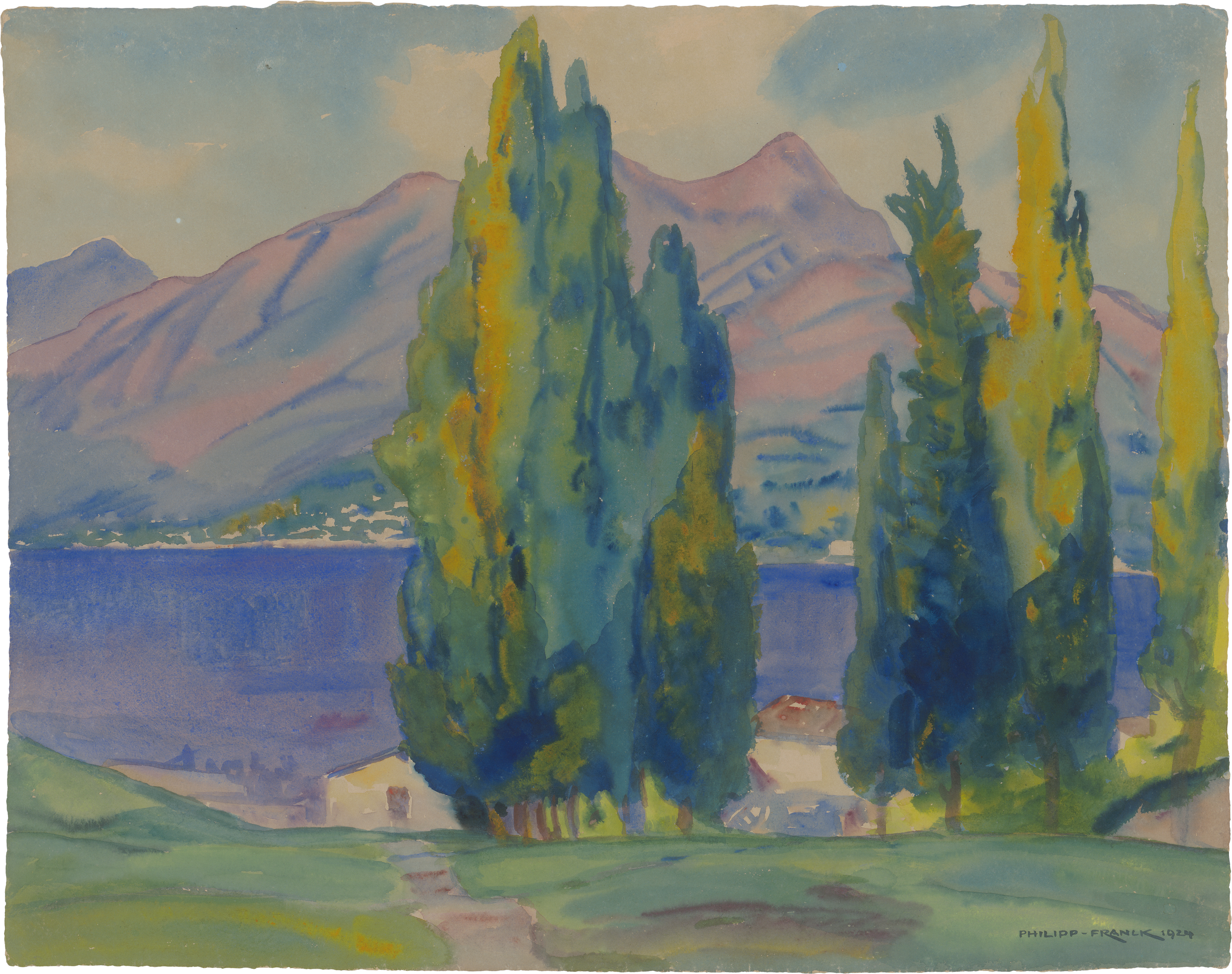 Das in sommerlich warme Töne getauchte Aquarell entstand vermutlich auf einer Italienreise des Künstlers. "Seit den 1924 einsetzenden Italienreisen trat das Aquarell in seine Rechte. Von Lugano, wo ich Morcote malte, zog der Wille meiner Frau mich nach Bellagio und im nächsten Jahre nach Cadenabbia an den Comersee. Und dieselben Berge, die in Lugano hart und langweilig in den Schweizer See fielen, hatten auf der italienischen Seite ein malerisches Gepräge.“ (Philipp Franck: Ein Leben für die Kunst. Nachwort von Bruno Kroll, Berlin 1944, S.62.).