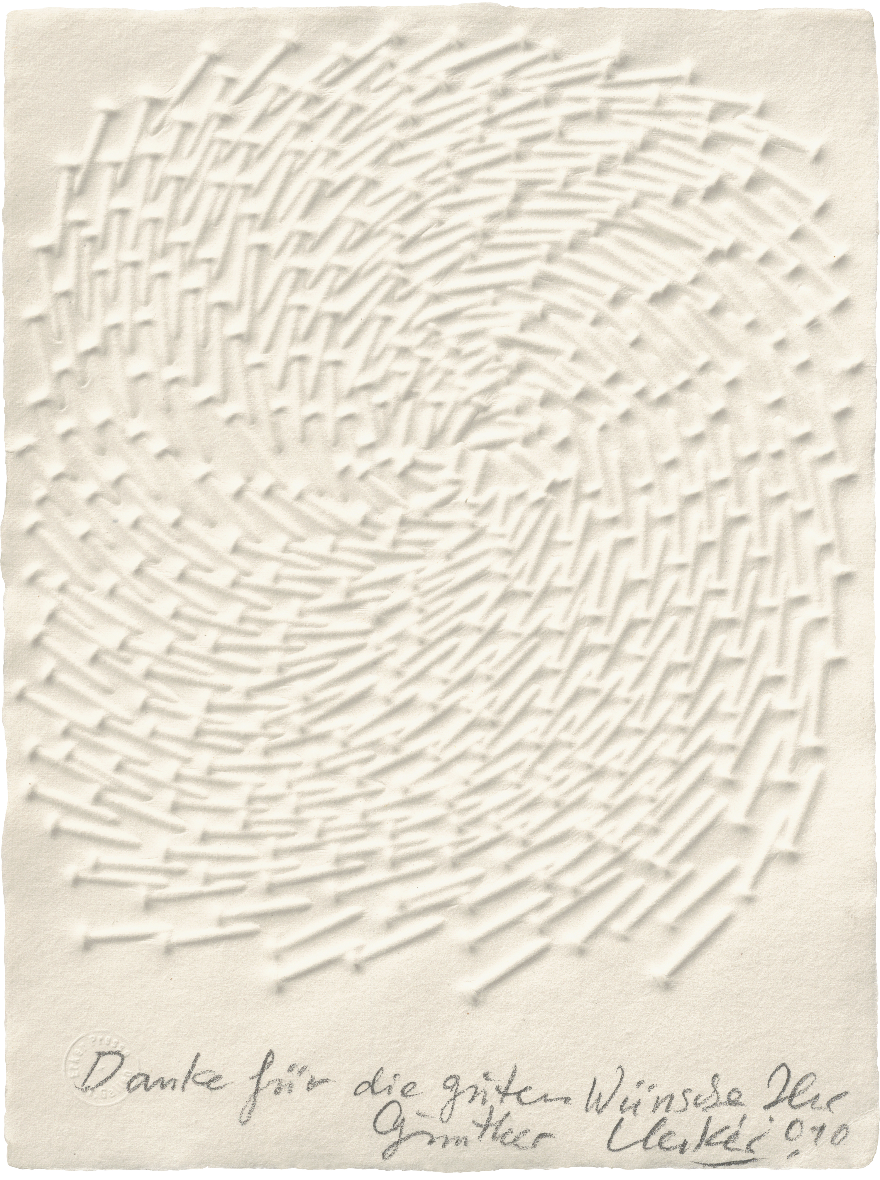 Signiert "Günther Uecker", datiert sowie gewidmet.