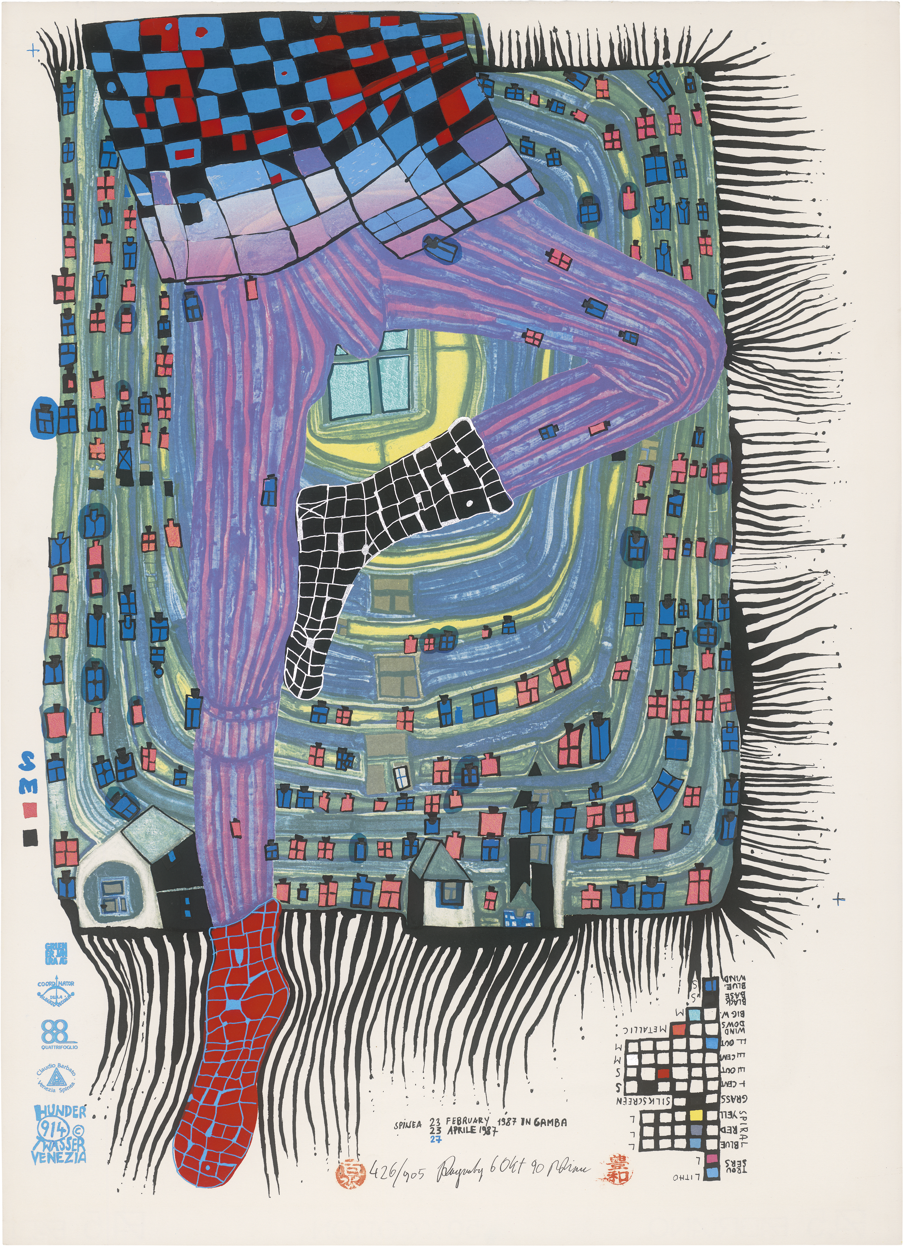 (d.i. Friedrich Stowasser, 1928 Wien - 2000 auf einer Schiffsfahrt im Pazifik)In Gamba