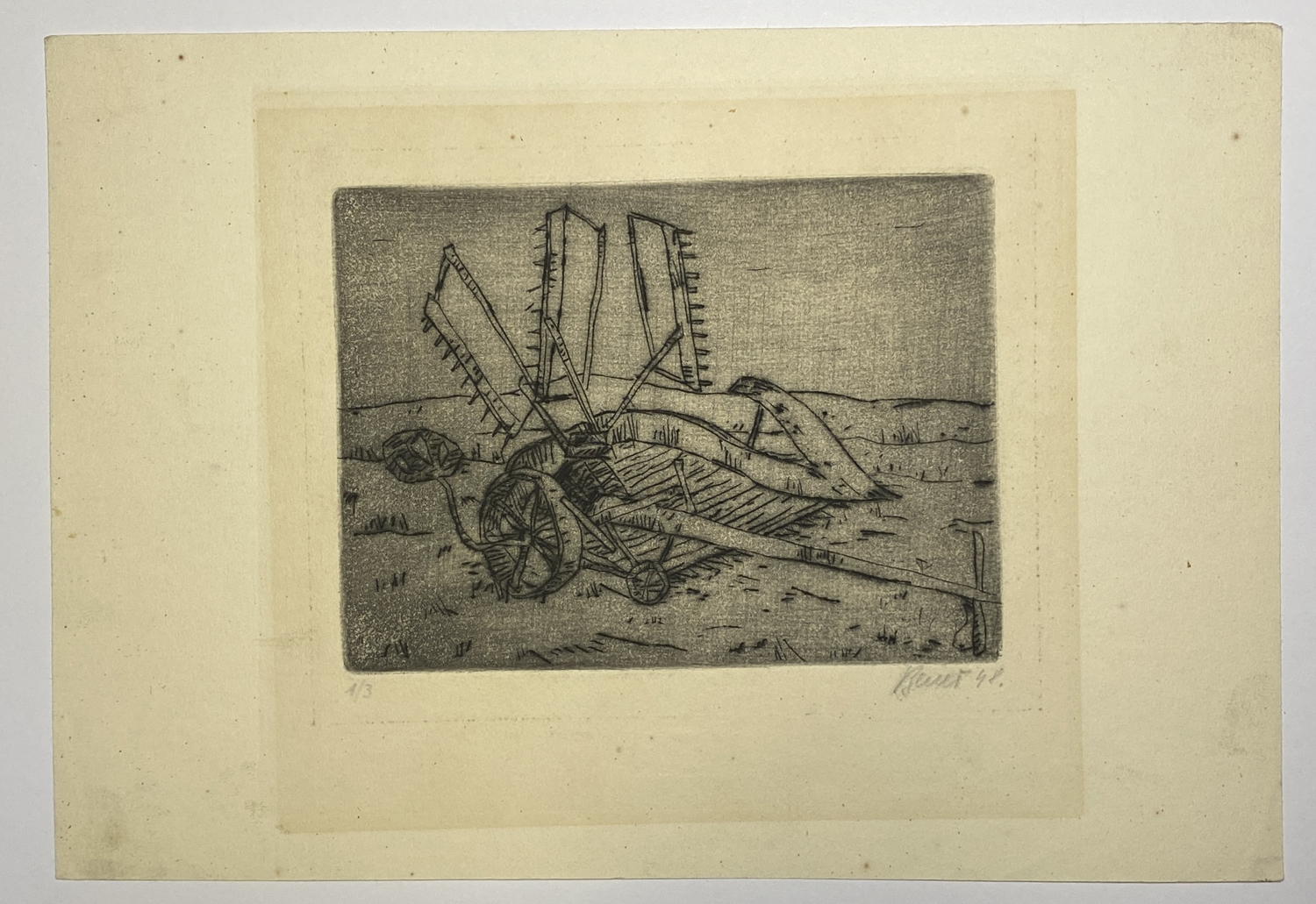 Mit einfachsten Mitteln und oft in sehr kleiner Auflage von nur wenigen Einzelexemplaren stellte Beneš seine graphischen Blätter her. Sehr selten.