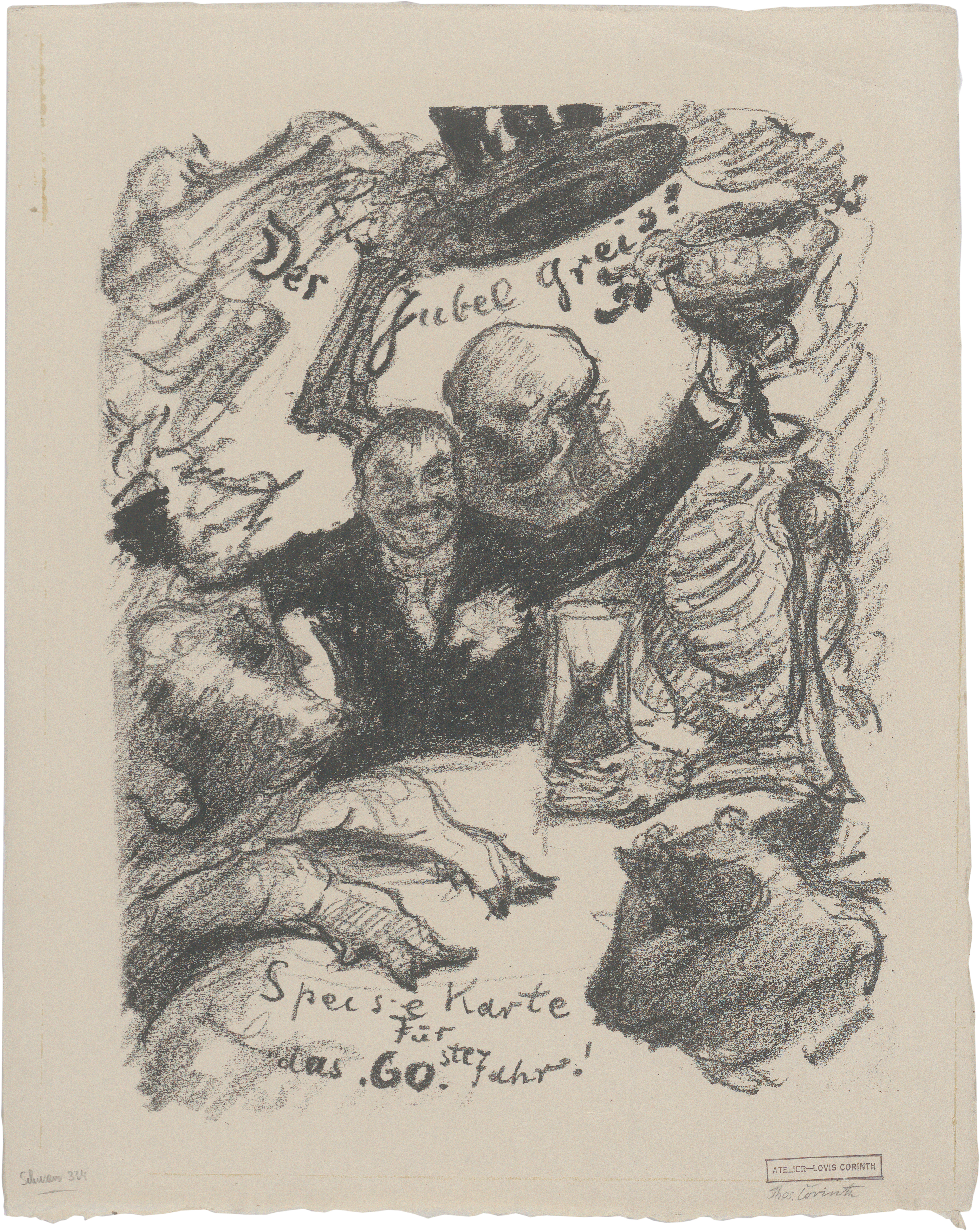 (1858 Tapiau - 1925 Zandvoort)Speisekarte zum 60. Geburtstag (Selbstbildnis mit dem Tod), III. Fassung