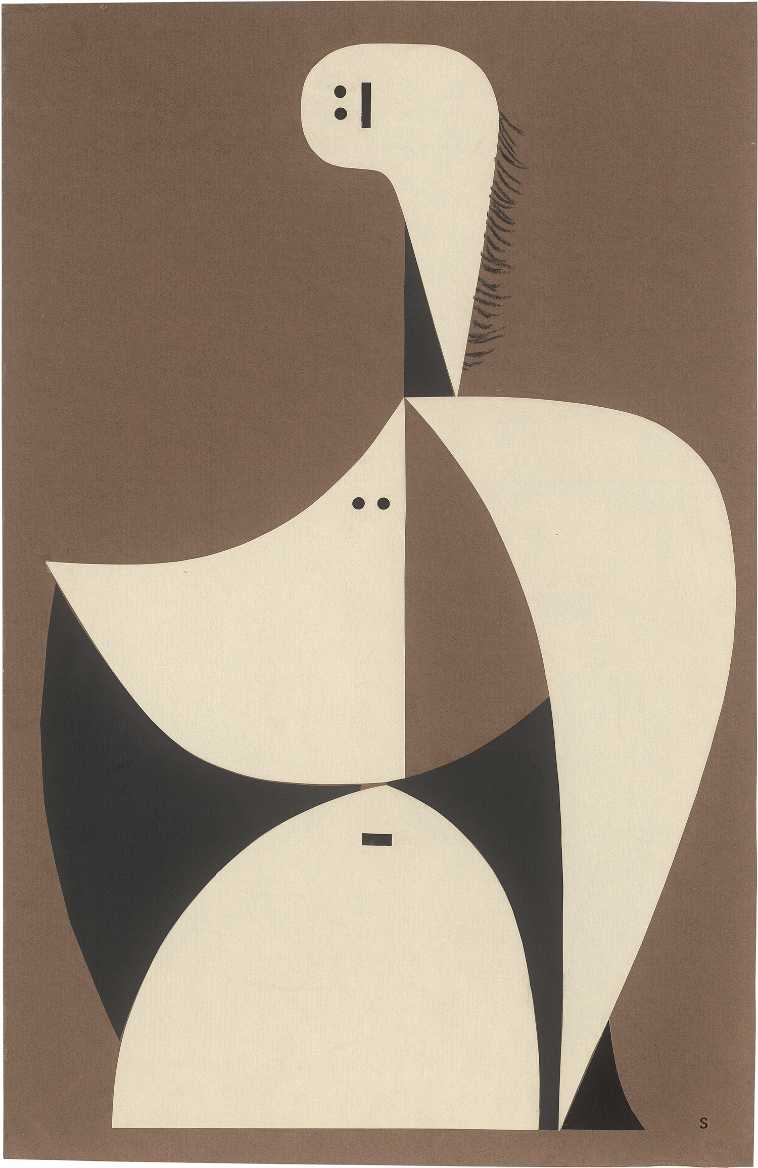 Farbige Papiere, collagiert, und Kreide in Schwarz auf Velinkarton. 1967.