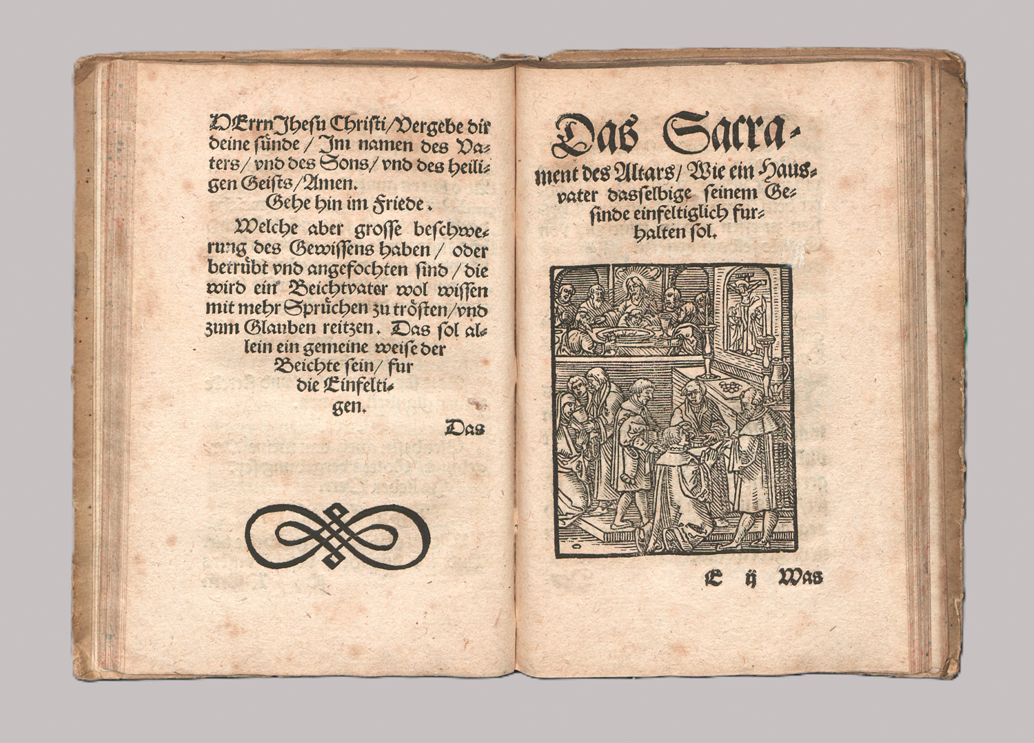 Vgl. VD16 L 5086. Nicht bei Benzing. – Im VD16 nicht verzeichneter Wittenberger Druck des zuerst 1529 erschienenen Handbuchs, das in zahllosen Auflagen und Übersetzungen erschien. Von der typographischen Titelblattgestaltung kommt wohl der ebenfalls unfirmierte Wittenberger Druck von 1558 unserer Ausgabe am nächsten, für den die identischen Holzschnittillustrationen Verwendung fanden (vgl. VD 16 L 5086). – Es fehlt wohl das weiße Schlussblatt. Etwas stock- oder braunfleckig, letzte Blatt mit kleiner Wurmspur im Bug. Titel mit verblasstem Feuchtigkeitsrand und alten Tinteneinträgen in Sepia (u. a. mit der Datierung "1551").