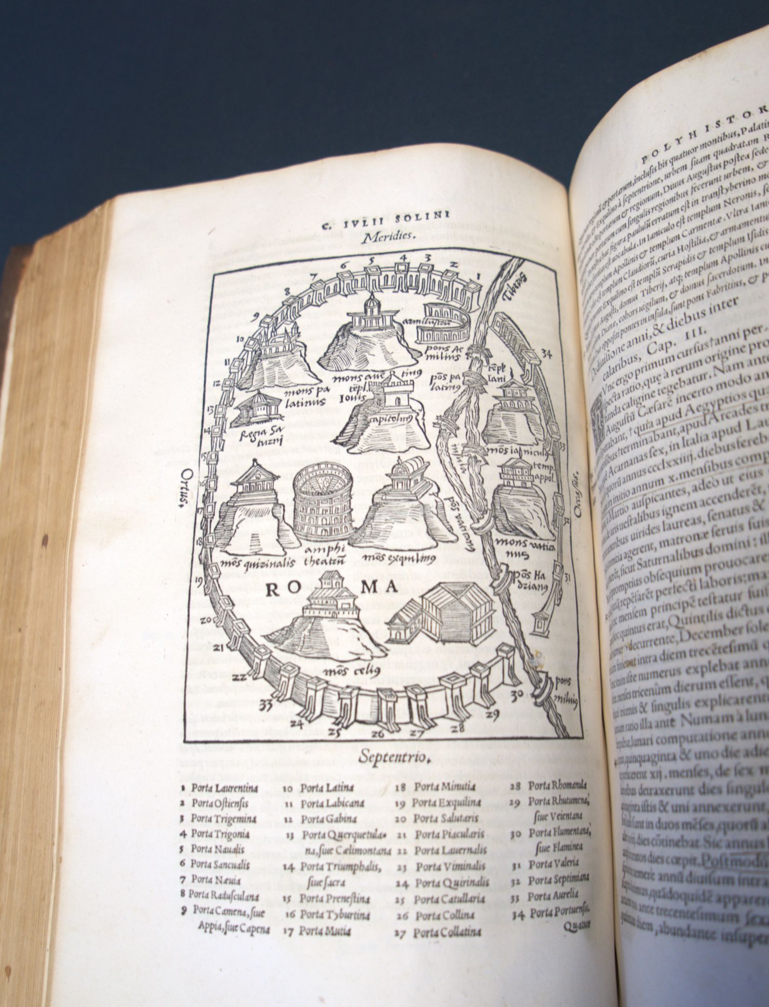 Vorhanden sind : I. Rufius Festus. Sexti ruffi viri consularis epitoma de gestis et assequuto dominio romanorum. Polybii historiarum libri quinque, Nicolao Perotto Interprete. 8 Bl., 198 S. Mit Holzschnitt-Druckermarke auf dem Titel. Basel, Petri, 1530. - II. Thukydides. Laurentio valla interprete & nunc a conrado heres bachio ad graecum exemplar di ligentissime recogniti. 6 Bl., 234 S. Mit Holzschnitt-Titelbordüre. Köln, Eucharius Cervicornus, 1527. - VD16 T 1117. - III. Gaius Julius Solinus. Pomponii melae de situ orbis libros tres, fide diligentiaque summa recognitos, adiunximus. 9 Bl., 230 S. Mit 3 (1 doppelblattgroß) Holzschnittkarten im Text. Basel, Michael Isingrinius und Henrich Petri, 1538. -VD16 S 6968. - IV. Herodot. Historiographi libri novem, musarum nomi nibus inscripti, interprete laurentio valla. 14 Bl., 274 S. Mit Holzschnitttitelbordüre. Köln, Eucharius Cervicornus, 1537. - VD16 H 2510. - V. Diodorus Siculus. En damus diodori siculi historici graeci, quae nunc quidem extare noscuntur opera nempe. 12 Bl., 374 S. Mit Holzschnitt-Druckermarke am Schluss. Basel, Henrich Petri, 1530.
