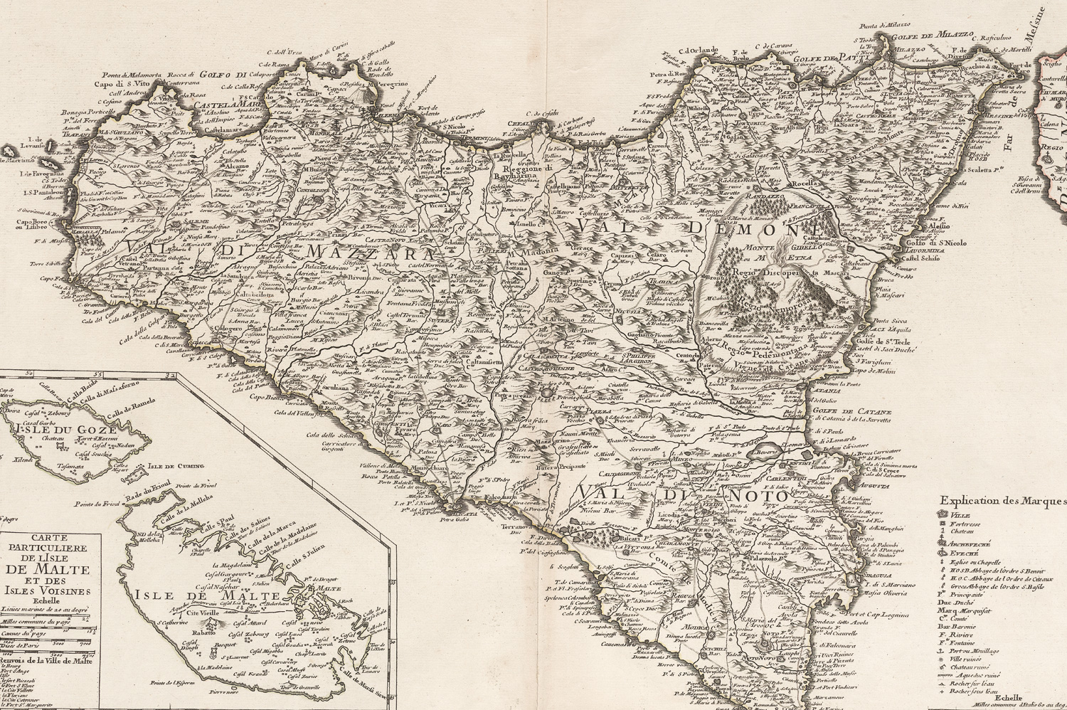 (1700-1773)Carte de l'Isle et royaume de Sicile