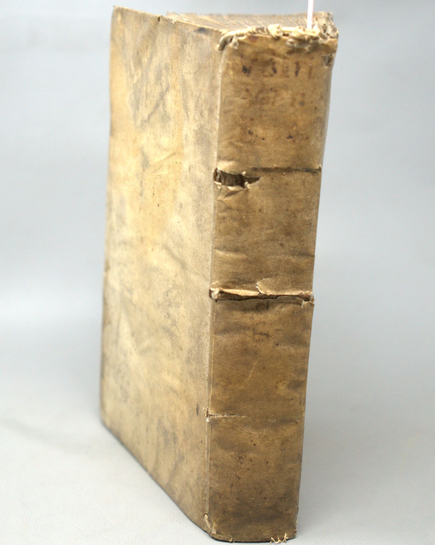 Mit der Namenskorrektur des Verlages von "Girolamo Genga", zwei winzige alte Stegverstärkungen und kleinem Wurmgang im breiten Rand der letzten Lagen, sonst kaum Wurmspuren, Läsuren oder Flecke, insgesamt sehr schönes Exemplar in zeitgenössischem Einband.