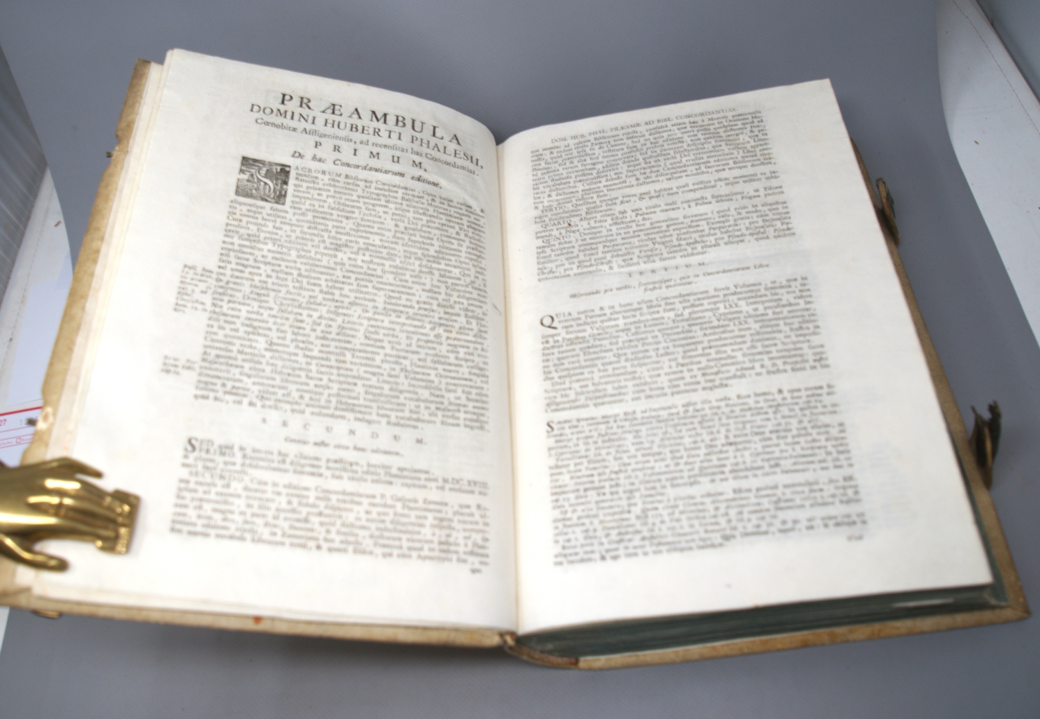 (1200-1263; 1549-1619)Sacrorum Bibliorum. Venedig, Nicolas Pezzana, 1754. - Dreispaltig gedruckte Konkordanz, die auf Hugo de Sancto Caro zurückgeht