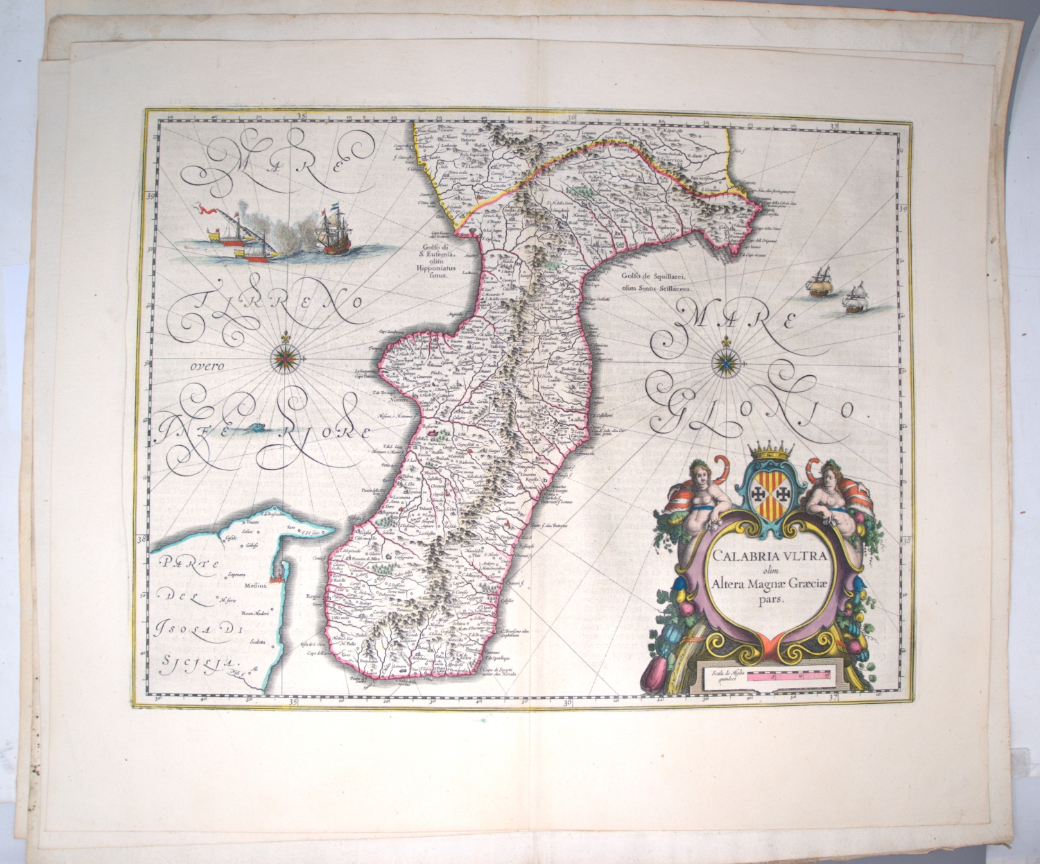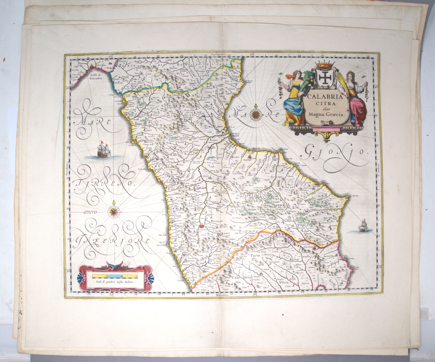 Vorhanden sind: I. Willem Janszoon Blaeu. Calabria Citra olim Magna Graecia. Grenzkoloriert. 1660. - II. Derselbe. Campagna di Roma, olim Latium. Patrimonio di S. Pietro et Sabina. Mit Grenzkolorit. Amsterdam 1640. - III. Derselbe. Calabria ultra olim altera magnae Graeciae pars. Mit Grenzkolorit. Amsterdam 1640. - IV. Derselbe. Terra di Lavoro, olim Campania Felix. Mit Grenzkolorit. Amsterdam, 1644. - V. Georg Braun und Franz Hogenberg. Calaris, Malta, Rhodus, Famaugusta. Köln 1574. - VI. Johann Baptist Homann. Sardiniae Regnum et Insula. Mit Flächenkolorit. Nürnberg 1734. - VII. Derselbe. Peloponesus hodie Moreae regnum. Mit Grenz- und Flächenkolorit. Nürnberg 1730. - VIII. Derselbe. Insula Corsicae accurata Chorographia Tradita. Mit Grenz- und Flächenkolorit. Nürnberg 1735. - IX. Henricus Hondius und Johannes Janssonius. Morea olim Peloponnesus. Koloriert. Amsterdam 1636.