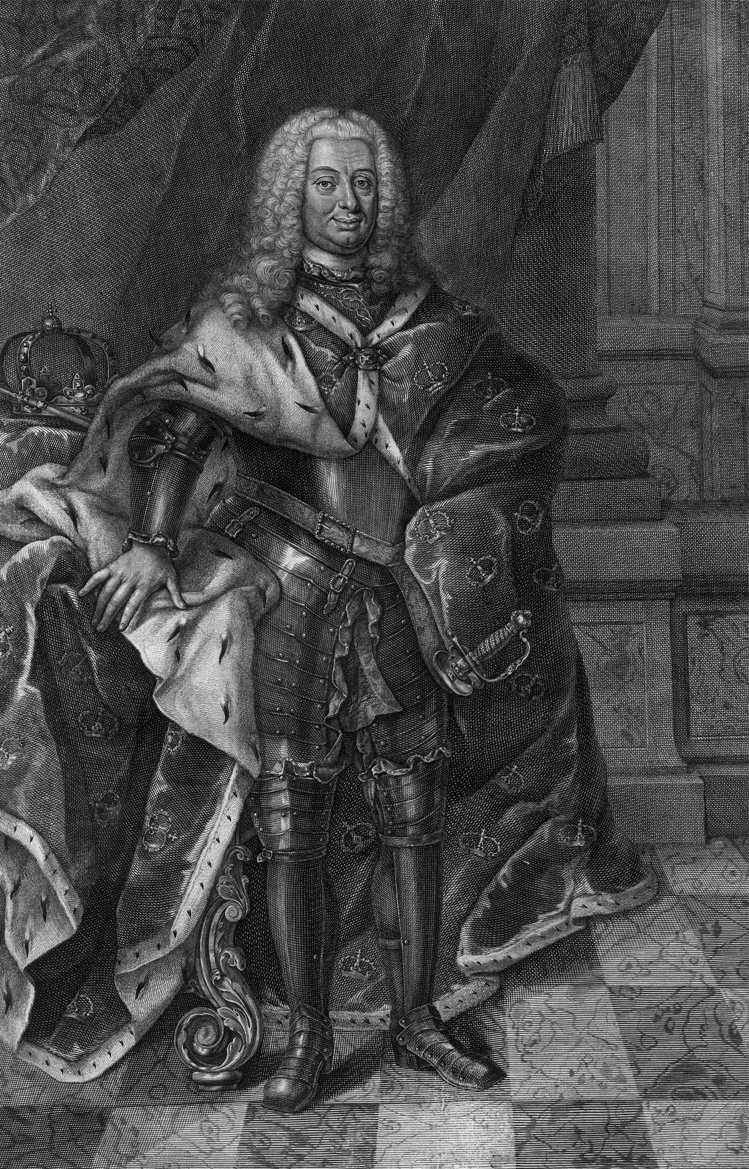 (Nordberg, Jöran Andersson). Leben Carl des Zwölften Königs in Schweden mit Münzen und Kupfern (übersetzt von J. H. Heubel). Bände I und II (von 3). 8 (statt 9) Bl., 704 S.; 1 Bl., XVI, 767 S. Mit 2 Kupfertiteln, 4 gestochenen Portraits, 2 Wappenkupfern, 24 (13 gefaltet) gestochenen Karten und Plänen, 248 gestochenen Textvignetten (teils halbseitig) sowie 42 gestochenen Initialen. 39 x 25 cm. Pergament d. Z. (Band I; etwas fleckig und berieben) bzw. Halbleder d. Z. (Band II; stärker berieben, mit Schabspuren, Ecken und Kapitale bestoßen, Rücken stellenweise überstrichen) mit RVergoldung und goldgeprägtem RSchild. Hamburg, Rudolph Beneke, 1745-1746.