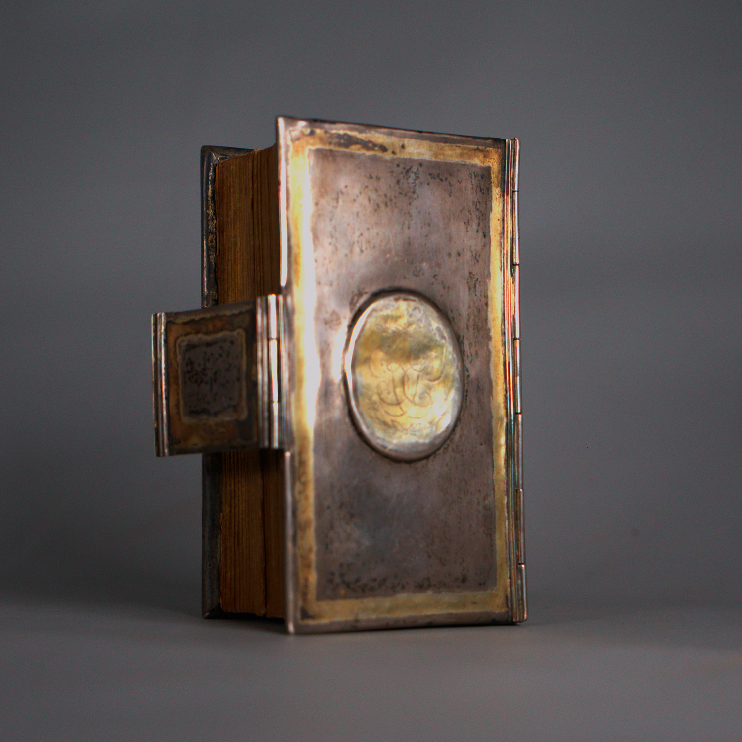 Einbände. - Barocker Silbereinband mit 2 Eignermonogrammen auf den Deckeln und breiter Schließe. 14 x 8 cm. Deutschland um 1700.