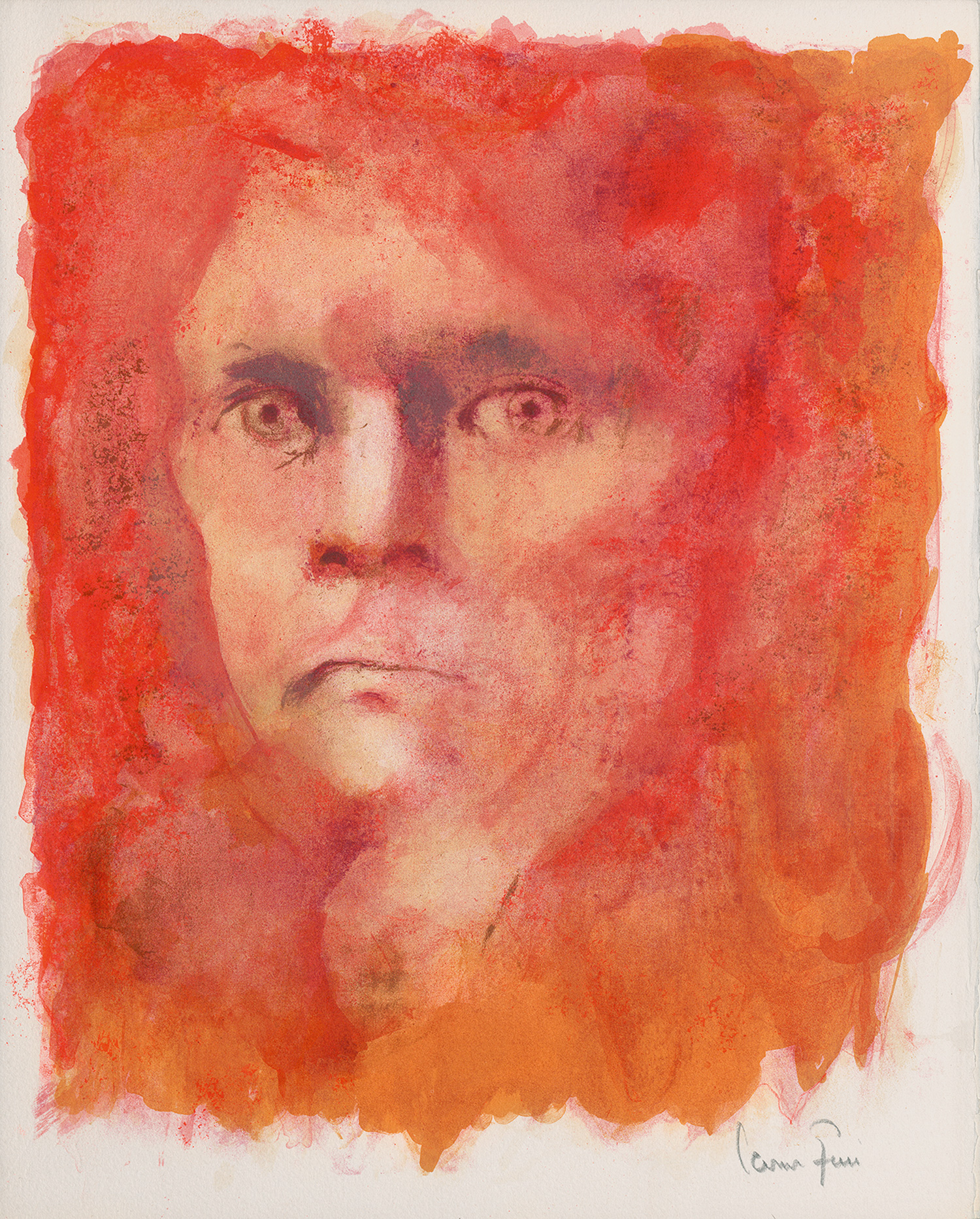 Fini, Leonor. - Perret, Jacques. Les sept péchés capitaux. 111 S., 4 Bl. Mit 8 signierten Original-Farblithographien sowie einer signierten Extrasuite dieser Graphiken von Leonor Fini. 41,5 x 33 cm. Lose Bogen in OUmschlag und roter OLeinenkassette (Rücken teils zerschlissen; innen mit Wasserrand und fleckig). Nizza, Éd. de la Belle Page, 1967.