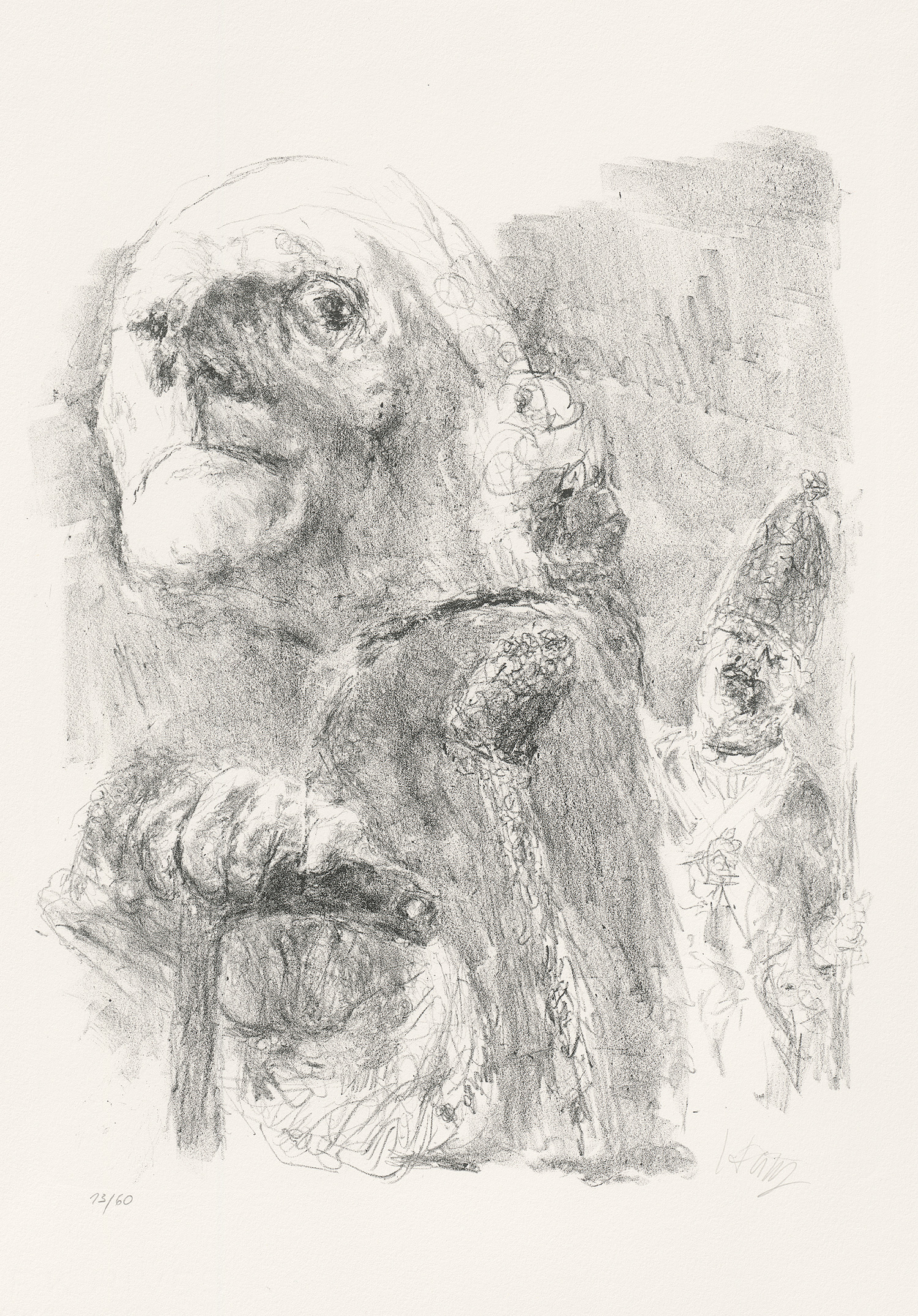 Eines von 60 Exemplaren (Gesamtauflage: 77). In der Tabor Presse Berlin auf BFK Rives-Bütten gedruckt und alle Blätter von Heisig signiert. Bernhard Heisig (1925-2011) gilt neben Werner Tübke und Wolfgang Mattheuer als einer der Begründer der Leipziger Schule. 1961 wurde er an die Hochschule für Grafik und Buchkunst Leipzig berufen und war dort zudem lange als Rektor tätig. – Sehr schön erhalten. – Beigegeben: Derselbe. Straße der Wartenden [und:] Schnauze voll. 2 signierte und nummerierte Original-Lithographien. Lose in OHalbleinenmappe. Um 2004. - Je eines von 27 Exemplaren von Heisig eingenhändig nummeriert und signiert.
