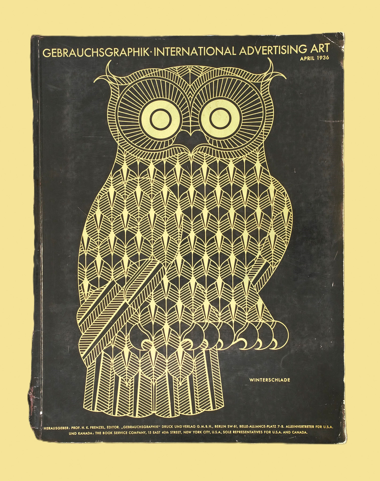 Gebrauchsgraphik. International Advertising Art. Herausgeber: K. H. Frenzel. Vol. XIII, No. 4. Mit zahlreichen Abbildungen und mehreren Probedrucken auf anderem Papier. 31 x 23,5 cm. Illustr. OBroschur (etwas berieben; Rücken minimal schadhaft). Berlin April 1936.
