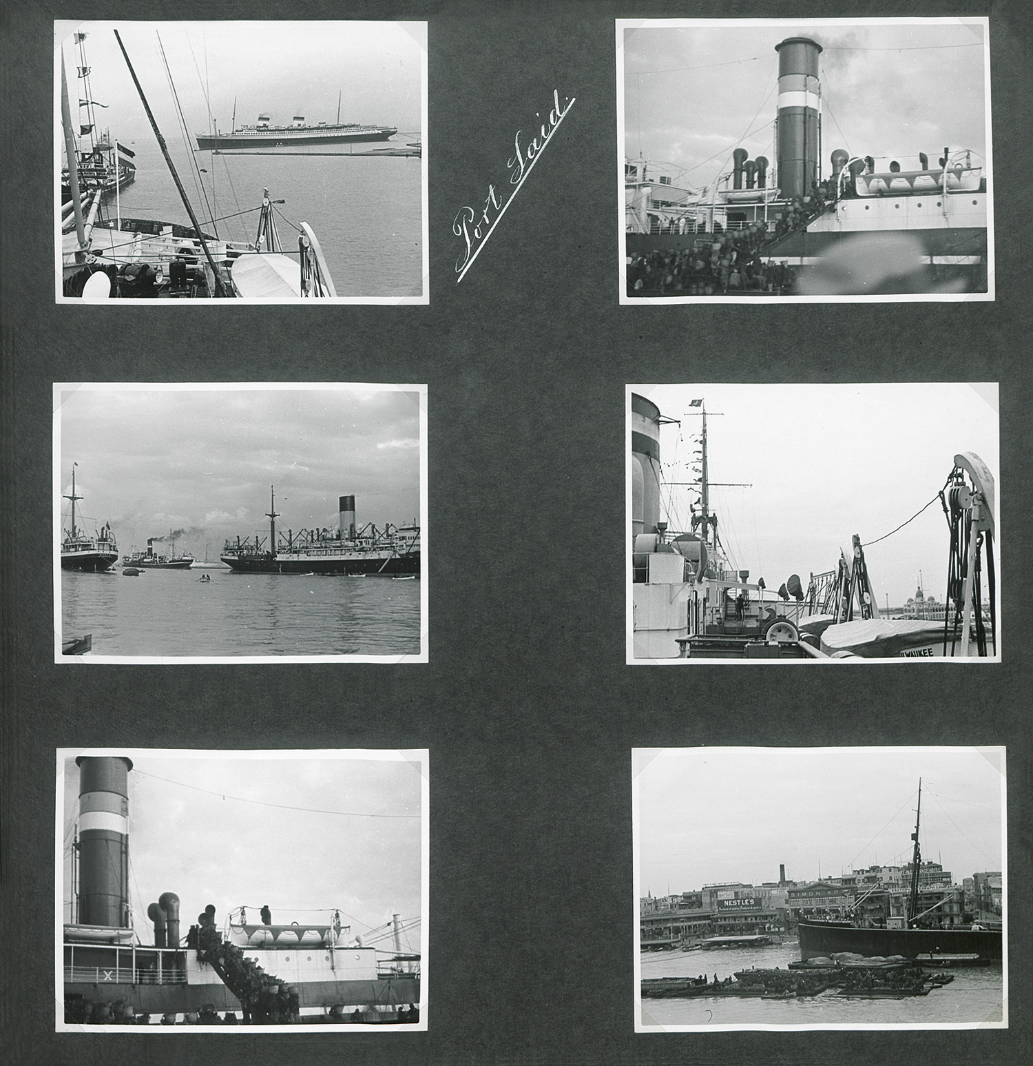 Große Mittelmeerfahrt 1935. 2 Fotoalben mit über 800 Postkarten und Vintage Fotoabzügen einer Mittelmeerreise im Frühjahr 1935, teils betitelt. 1. Teil: Venedig (Abreise 11. 3. 1935) bis Jerusalem (24. 3. 1935) - 2. Teil: Beirut (Abfahrt 25. 3. 1935) bis Genua (Ankunft 3. 4. 1935). Montiert auf festem Kartonpapier in blauem Originalleinen mit goldgeprägtem Deckeltitel. 33 x 34,5 cm. 1935.