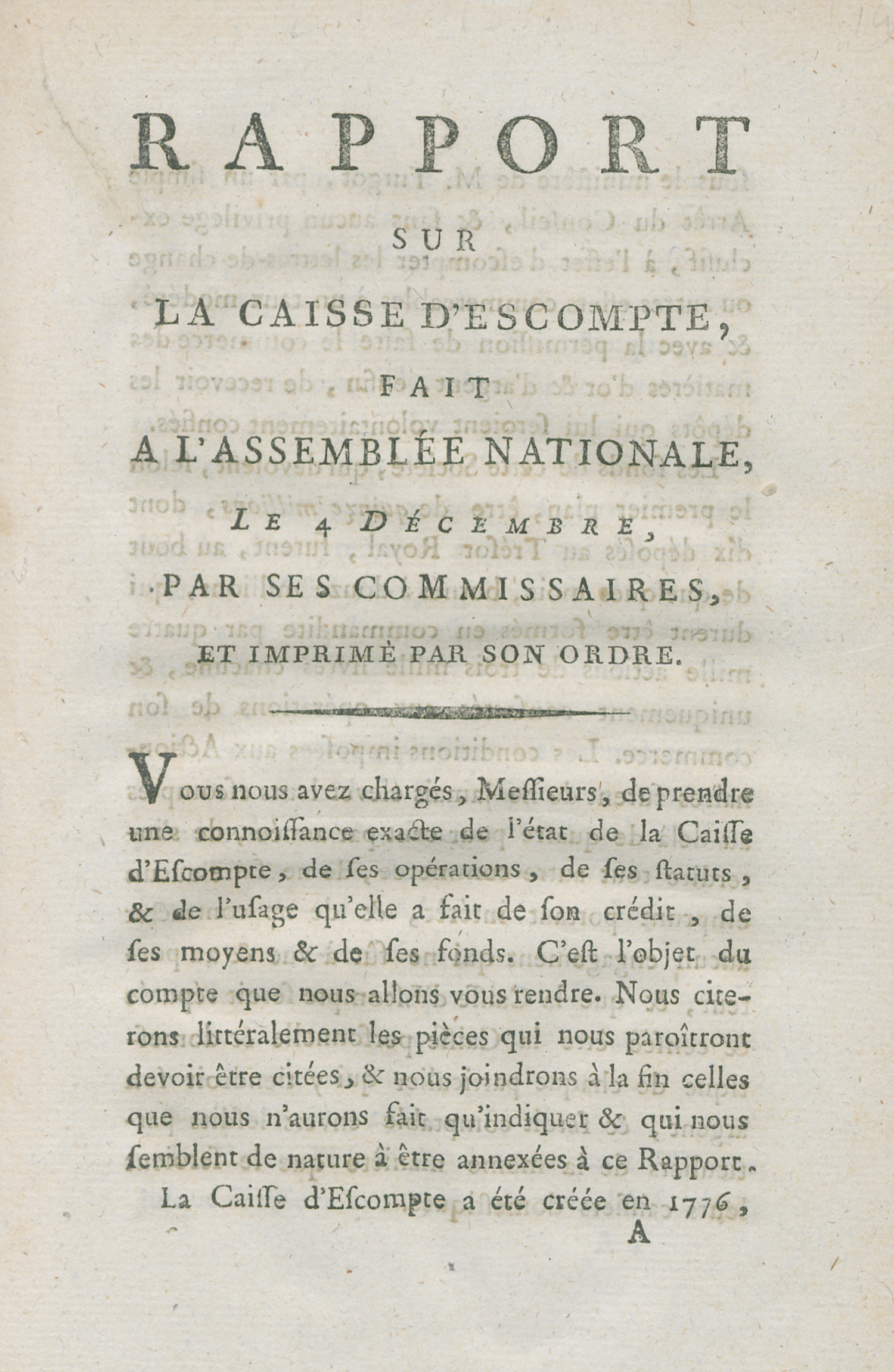 (1743-1794)Rapport sur la caisse d'escompte, fait à l'Assemblée Nationale