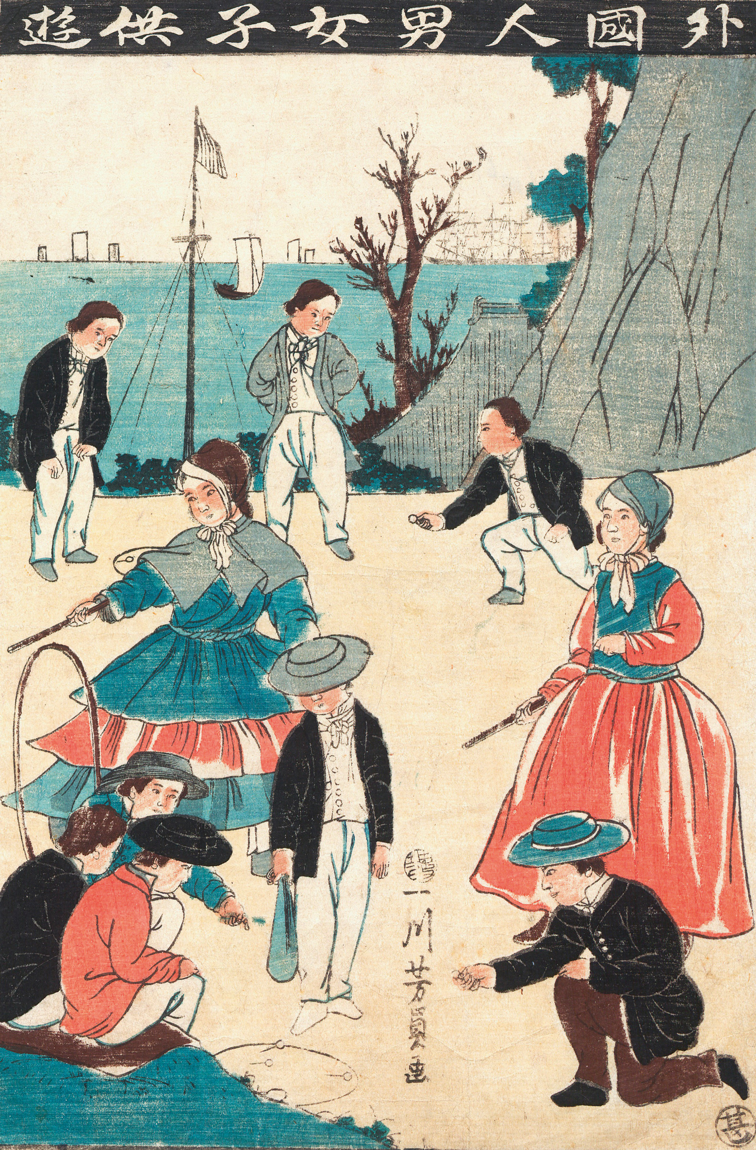 I. Gaikokujin danjo kodomo yu (japonice: Spielende ausländische Jungen und Mädchen).